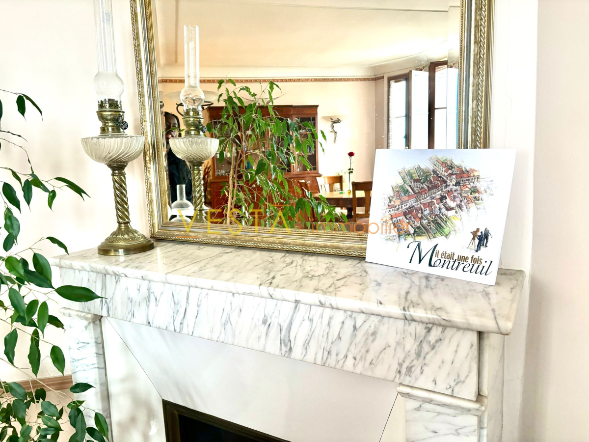 Le cabinet Vesta immobilier vous présente un produit rare à la vente sur notre ville : Dans un des plus beaux haussmanniens du centre ville (Entre Croix de Chavaux et Mairie) En dernier étage, plein sud sans aucun vis a vis et dans une copropriété bien tenue, un appartement 3 pièces de 75m² (71m²+ chambre de service de 4m² ) qui se présente comme suit : une entrée , une cuisine US équipée , un séjour (plein sud ) avec deux grandes portes fenêtres donnant sur balcons, 2 chambres (nord ouest sur jardin ), une salle de bains et une salle d' eau, WC séparés , de nombreux rangements (dressing), une cave . parquet, moulures, cheminées . gardien, digicode et visiophone De nombreux travaux de copropriété ont été réalisés (ravalement isolation façade nord , parties communes , ascenseur etc...) Proximité immédiate de toutes commodités (Métro, bus, Monoprix, boulangeries, pharmacies., écoles etc ..) Parking possible . .